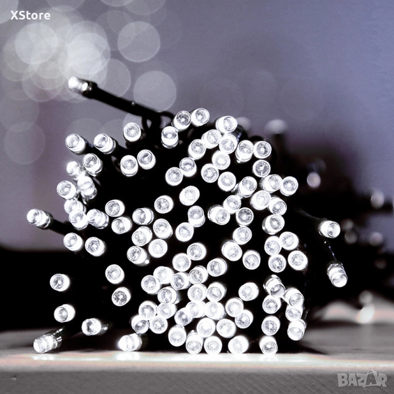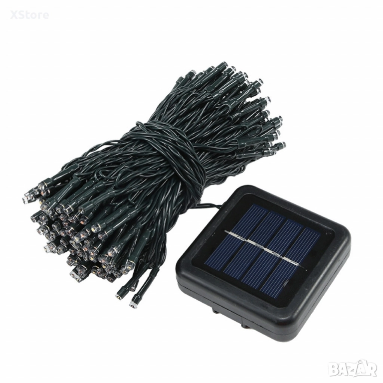 Соларни коледни лампички с дължина 12 метра и 100 LED лампи. Предлагат се в четири цвята по избор и разполагат с 5 режима на светене, създаващи разнообразни светлинни. Захранват се от соларен панел, което ги прави идеални за външна украса, без нужда от електрическо захранване. Варианти Светлина: Топла бяла Светлина: Студена бяла Светлина: Многоцветна Светлина: Синя