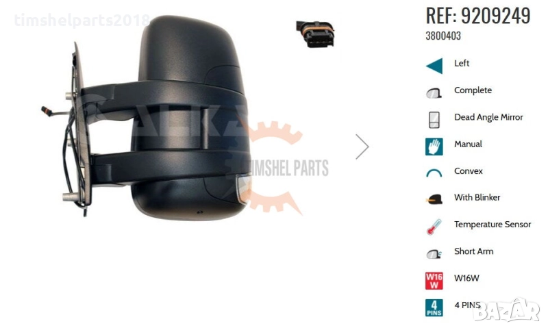 Ръчно Огледало с Температурен датчик "Късо рамо" за Iveco Daily 2006-2011 год. - Шофьорска страна