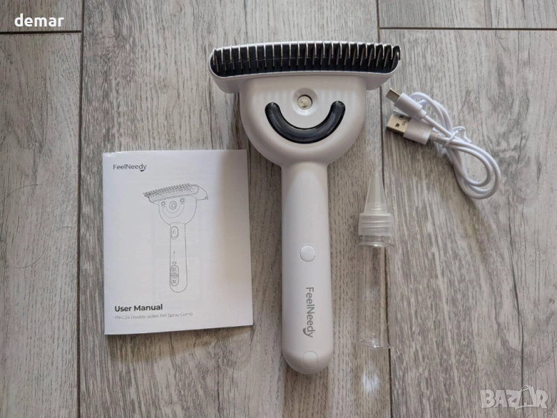 Четка за кучета FEELNEEDY за груминг, двустранна, акумулаторна, IPX6