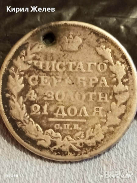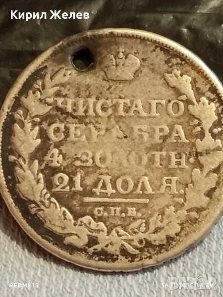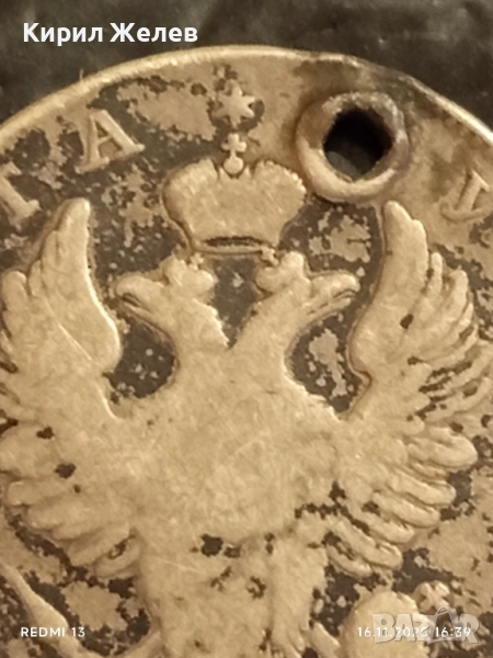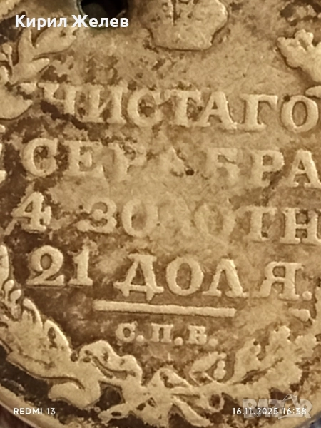 Сребърна монета 1 рубла 1818г. Руска Империя Александър първи уникат за КОЛЕКЦИОНЕРИ 28345 → Обява 52432535
