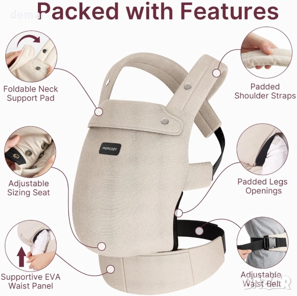 Бебешко кенгуру Momcozy PureHug, чист памучен слинг за 3-24 месеца