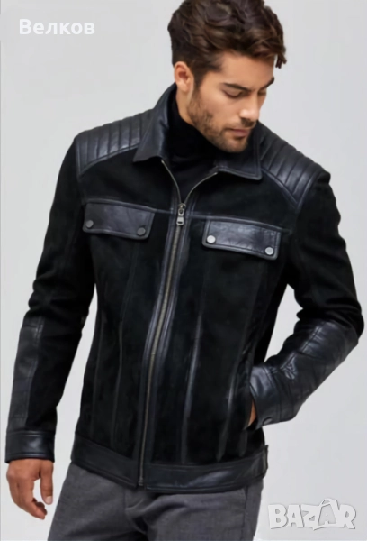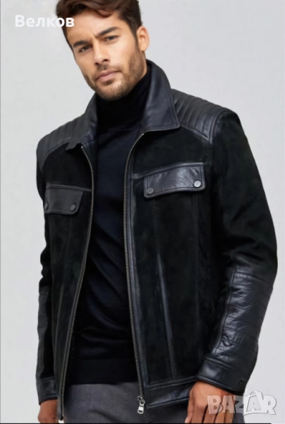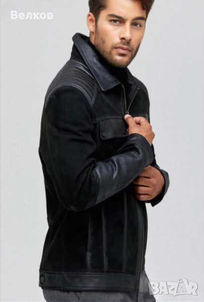 Мъжко кожено яке от велур и естествена кожа – размер L → Обява 52433533