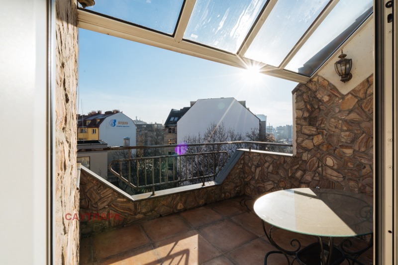 Агенция САУТПАРК продава ексклузивно просторен и слънчев МЕЗОНЕТ 184. 24 кв.м. ЗП с 4.822% идеални части от сградата, надземен ГАРАЖ (19.18 кв.м.) и мазе (11.53 кв.м), както и идеални части от земята. Имотът е с изложение изток-запад. МЕТРО станция Красно село е на 3 мин. пешеходно разстояние. Имотът е на две нива. Обзаведен е стилно с класически мебели. Настилките са от висококачествен паркет. Кухнята е напълно оборудвана. ПЪРВО НИВО се състои от антре, просторна дневна с действаща камина, кухненски тракт с трапезария, спалня/кабинет, баня и тоалетна, две тераси. Имотът е с външна изолация. Отоплението е с термо-помпа на конвектори. ВТОРО НИВО - Три спални, баня и тоалетна. Третата спалня е по-малка и може да се ползва и като гардеробна. Реално имате 4 спални, без да правите компромис с размерите на дневната. Цената на ГАРАЖА е 35000 евро. Пазар Красно село е на 10 мин пешеходно разтояние, както и множество ресторанти и магазини.