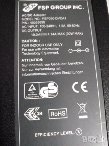 Зарядно за лаптоп FSP Group FSP090-DVCA1 19V, 4.74A, 90W, снимка 1 - Части за лаптопи - 52433740 Зарядно за лаптоп FSP Group FSP090-DVCA1 19V, 4.74A, 90W, снимка 2 - Части за лаптопи - 52433740 Зарядно за лаптоп FSP Group FSP090-DVCA1 19V, 4.74A, 90W, снимка 3 - Части за лаптопи - 52433740 Зарядно за лаптоп FSP Group FSP090-DVCA1 19V, 4.74A, 90W, снимка 4 - Части за лаптопи - 52433740 1/4