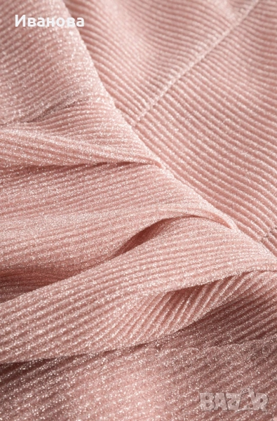 Цвят нежно розово с проблясващи сребристи нишки.