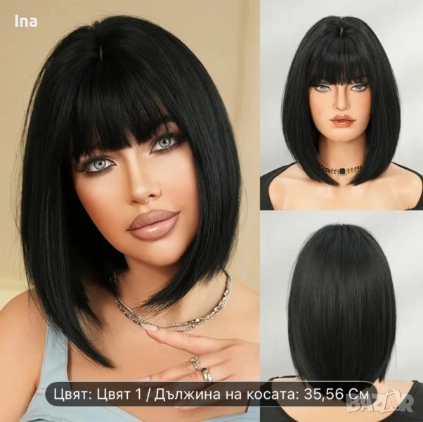 Черна къса каре перука, снимка 1 - Аксесоари за коса - 52434984 Черна къса каре перука, снимка 2 - Аксесоари за коса - 52434984 Черна къса каре перука, снимка 3 - Аксесоари за коса - 52434984 1/3