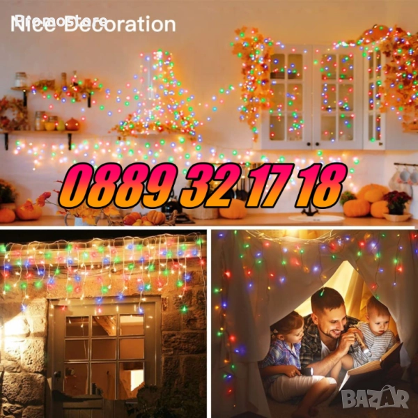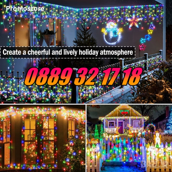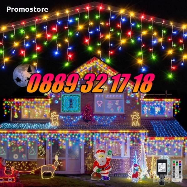 Коледна завеса, коледни лампички тип завеса 3 м с блиц ефект допринасят за празничното Ви настроение. Придават на дома Ви чудесно коледно настроение, уют и топлина с повече усмивки, подаръци и празнична обстановка.
