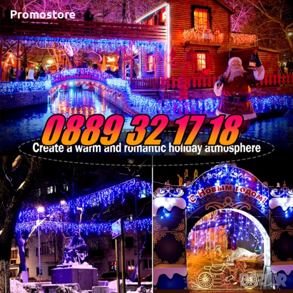 Коледна завеса, коледни лампички тип завеса 3 м с блиц ефект допринасят за празничното Ви настроение. Придават на дома Ви чудесно коледно настроение, уют и топлина с повече усмивки, подаръци и празнична обстановка.