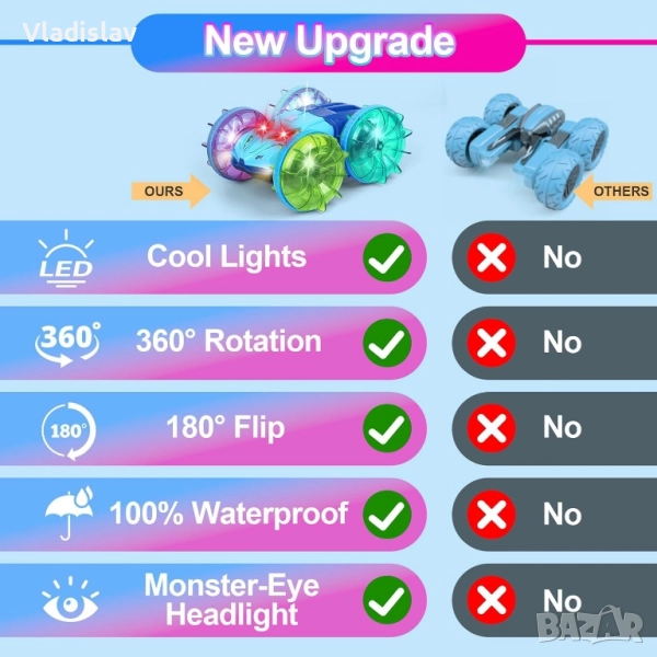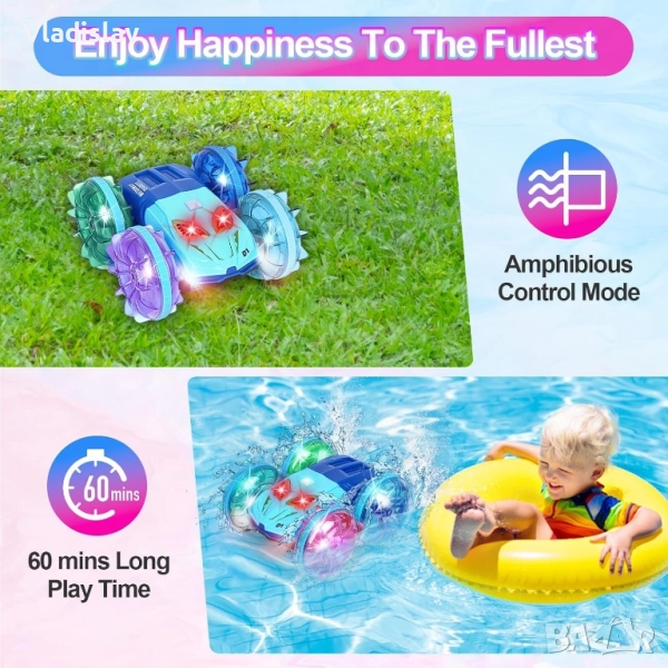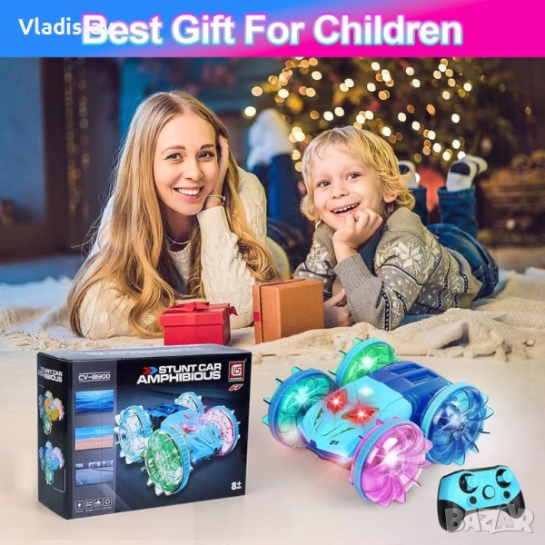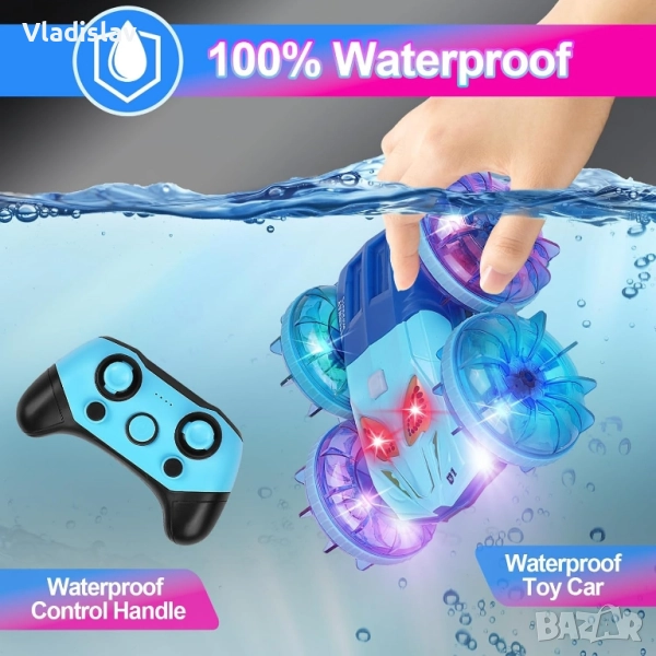 Амфибийна кола с дистанционно управление с LED светлина, 4WD водоустойчива → Обява 52435284
