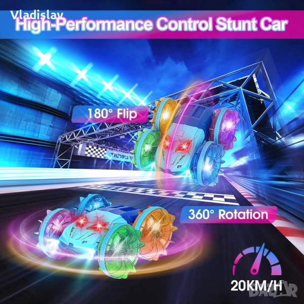 Амфибийна кола с дистанционно управление с LED светлина, 4WD водоустойчива RC каскадьорска кола, въртене на 360°, радиоуправляема кола за деца от 6-12 години, коледни подаръци за рожден ден за вътрешна и външна употреба