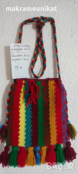 Продавам етно-торби (чанти), за народна носия, за сурвакари, коледари, кукери. Подходяща декорация за механа, битов кът, за подарък за ценители на българските традиции и обичаи.