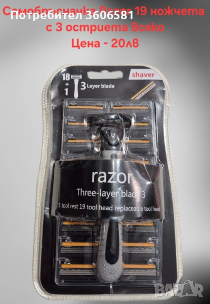 2. Ръчна Самобръсначка razor Three - layer blade 3 , Самобръсначка с 19 ножчета подарък всяко със 3 остриета бръснещо добре , на ниска цена за непрециозни и не много твърди бради, идеален за ежедневна грижа на хигиената на мъжа или жената , с нежна грижа към кожата чрез овлажняващата лента която има детоксикиращо и почистващо действие.