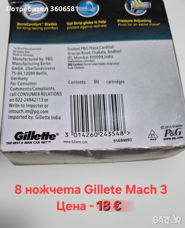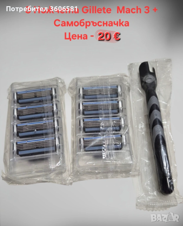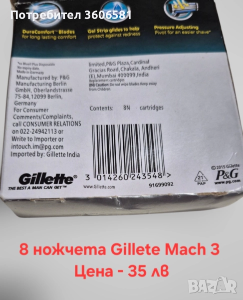 самобръсначка Mach 3 , със 3 остриета и 4 или 8 броя ножчета .