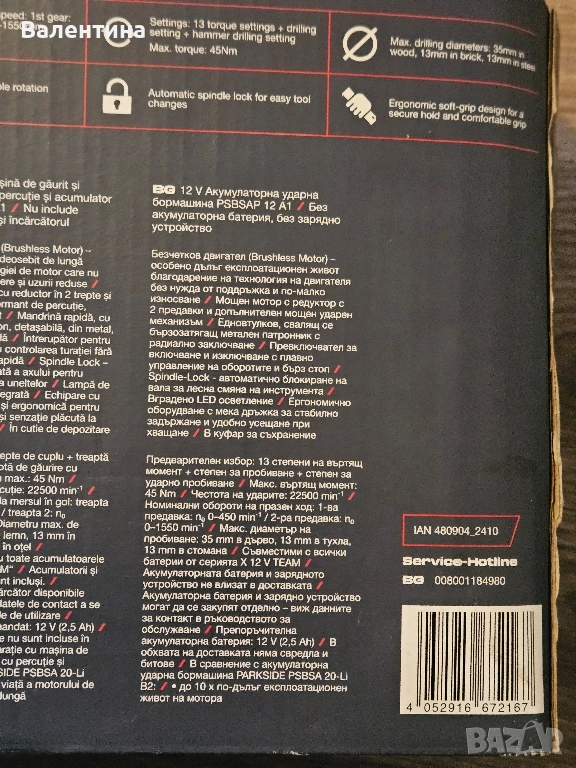 Ударен винтоверт Parkside PSBSAP 12V A1 ,45nm → Обява 52436366