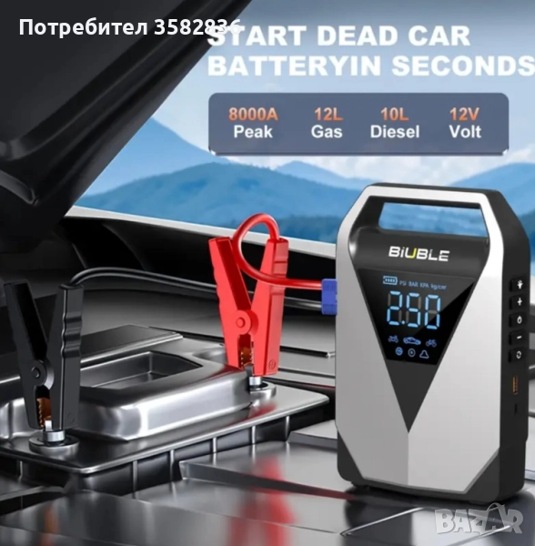 Мултифункционален Автомобилен Стартер BIUBLE (Модел LD12) 8000A с Въздушен Компресор
