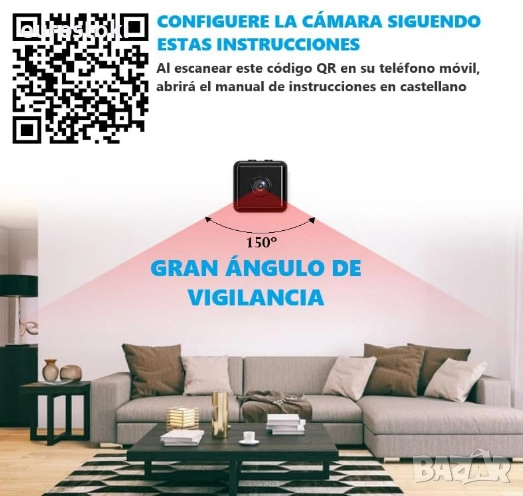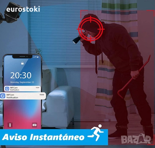 Работи с мобилно приложение. Можете да получите достъп до тази WiFi камера от всяка точка на света, като използвате мобилното приложение, предварително изтеглено на вашия телефон с Android или iOS, за да видите през шпионската камера. Идеална за наблюдение на бебета, деца, домашни любимци или за достъп на нежелани хора в дома ви, докато сте далеч. Работи и без Wi-Fi с micro SD карта (карта НЕ Е включена).