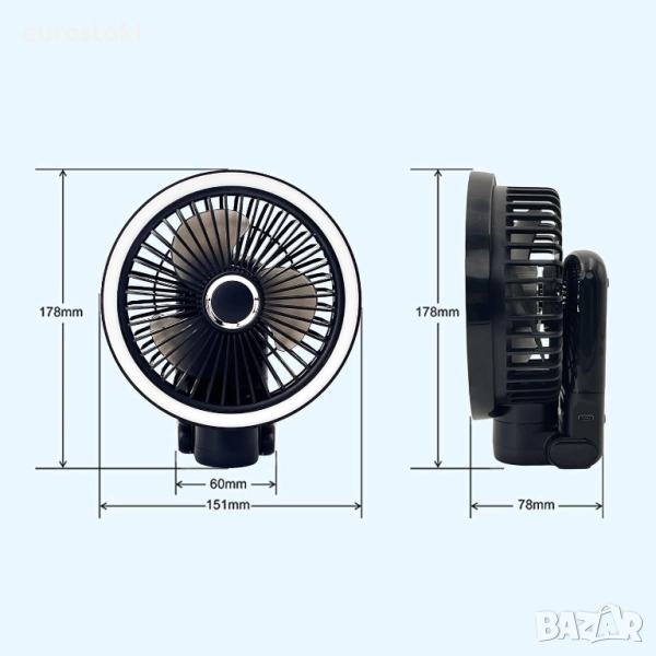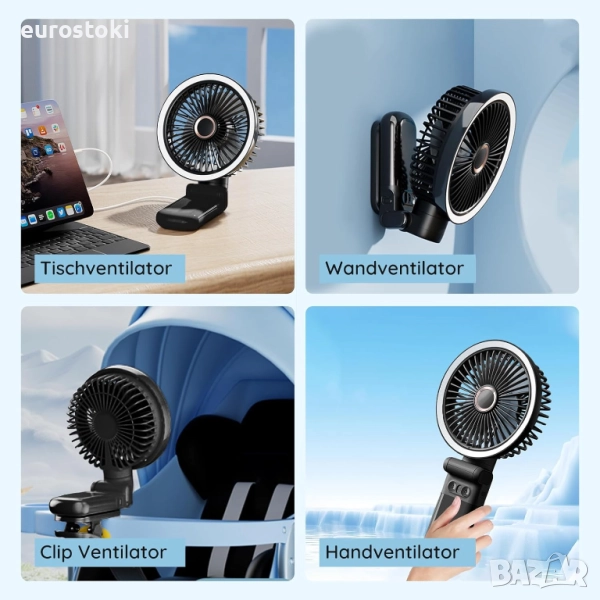Този настолен вентилатор с щипка осигурява свеж и приятен въздух по всяко време и навсякъде. Предлага се с нощна светлината е мека и без отблясъци и ви придружава всяка лятна нощ. 3+1 настройки за скорост на вятъра отговарят на различните предпочитания на потребителите и нуждите от комфорт на тялото