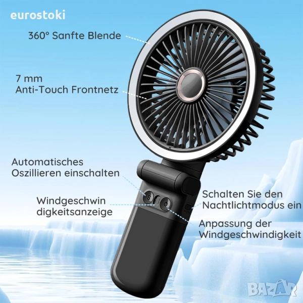 180 въртене. Сгъваемият дизайн с широкоъгълно въртене осигурява циркулация на въздуха в голяма площ, достигайки до всеки ъгъл
