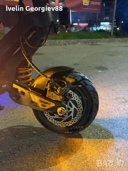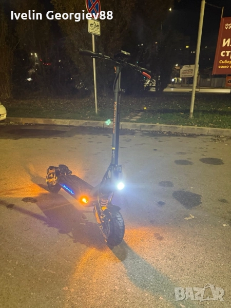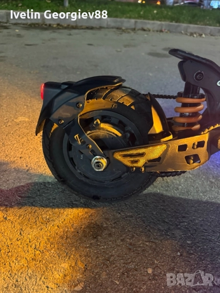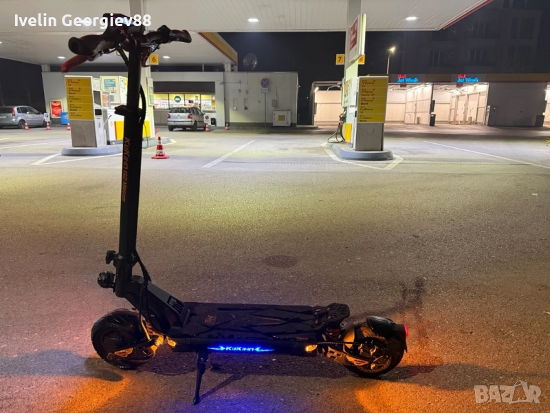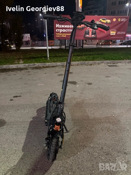 KuKirin G2 Master в напълно изправно техническо състояние. Тротинетката е на 950 км реален пробег, поддържана редовно, като скоро са сменени накладки, спирачни дискове и поставени нови асфалтови гуми. Работи перфектно, както батерия, така и двата двигателя, не е карана в дъжд и винаги е съхранявана на закрито. Има единствено козметични забележки, от типа драскотини по корпуса, получени от нормална употреба и няколко падания – цената е намалена именно поради това. Няма никакви технически или функционални проблеми. Основни характеристики: Два мотора по 1000W 52V / 20.8Ah батерия Максимална скорост: до 60 км/ч Пробег: до ~70 км с едно зареждане (в зависимост от режима и условията) Режими на каране: Single / Dual 10-инчови гуми – нови асфалтови Предни и задни дискови спирачки LED осветление и сгъваем механизъм Товароносимост до 120 кг Тегло около 33 кг Причина за продажба: Не се използва активно. !Възможен е коментар на цената!