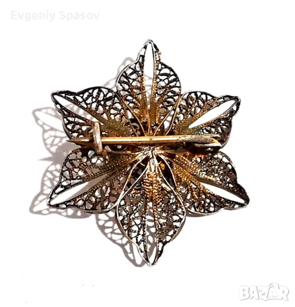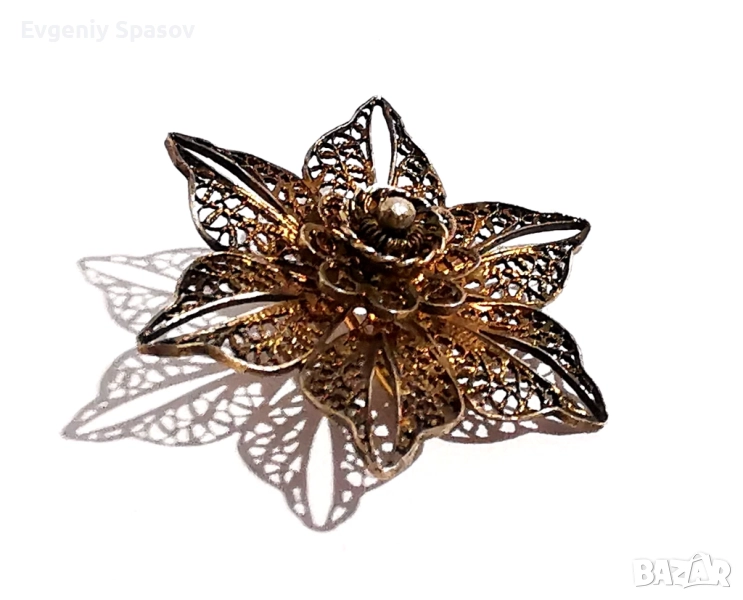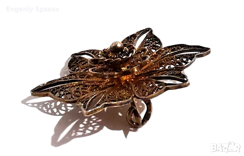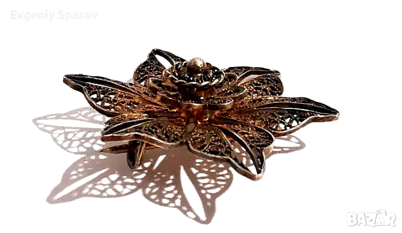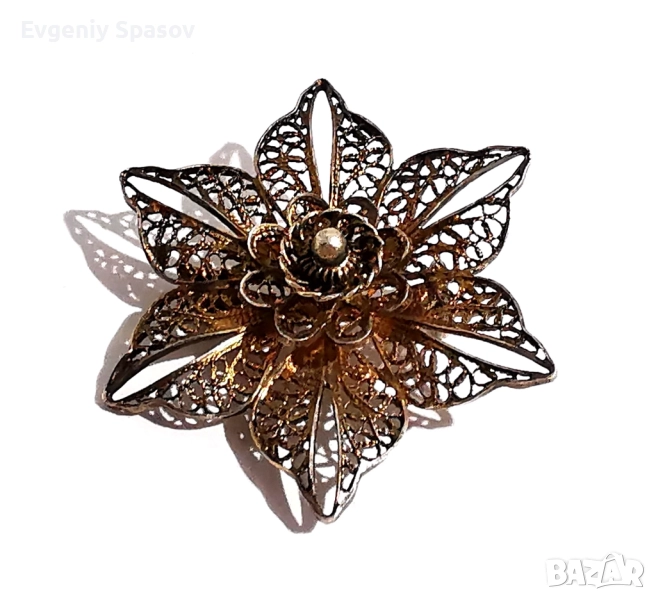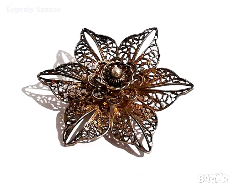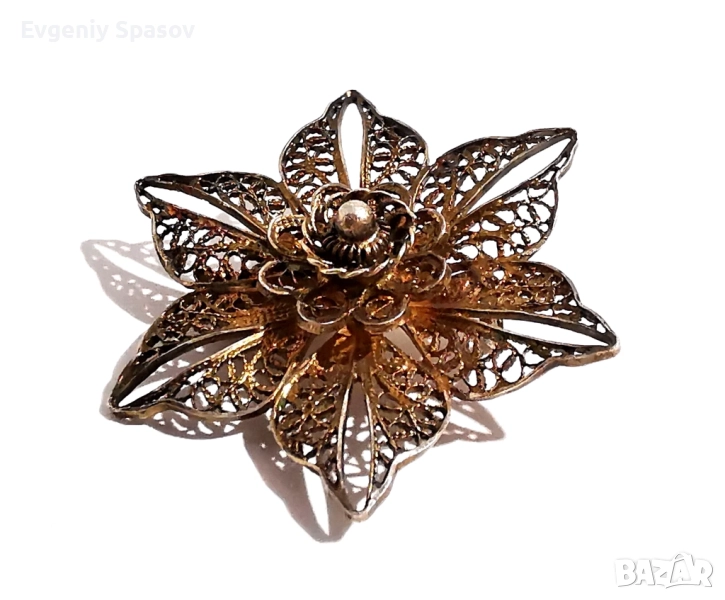 Старинна Сребърна Брошка Красиво Цвете Филигран Изцяло Ръчна Работа → Обява 52437837