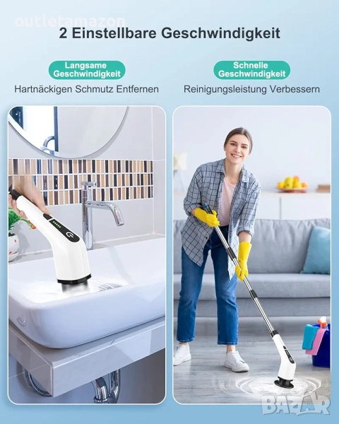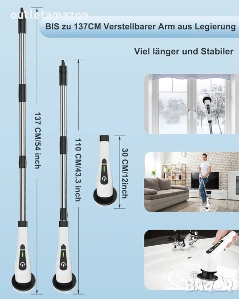 Електрическа четка за почистване, безжична електрическа въртяща се четка с 8 сменяеми глави за четка за бормашина, комплект мопове за вана и подови плочки с регулируема дръжка 137 см за баня, кухня, кола.