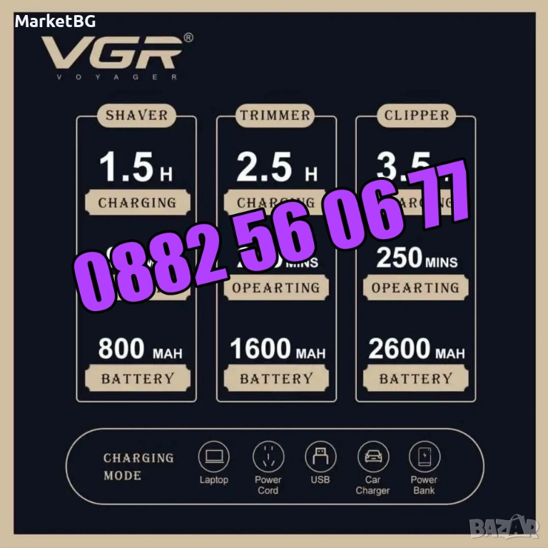 КОМПЛЕКТ Машинка за подстригване, самобръсначка и тример VGR 642 → Обява 52438142