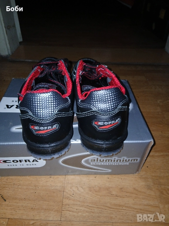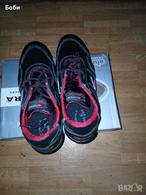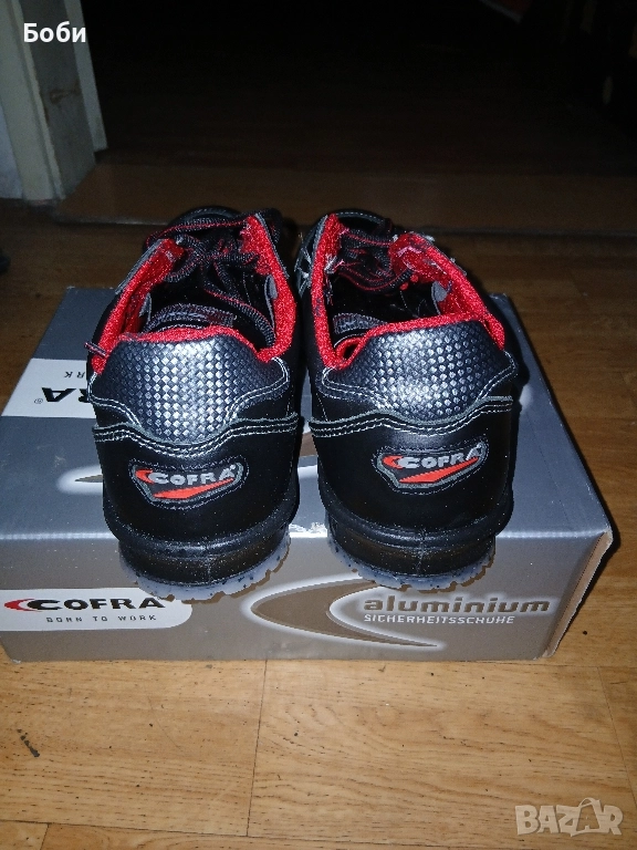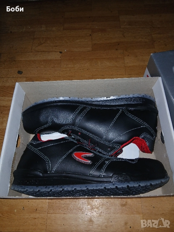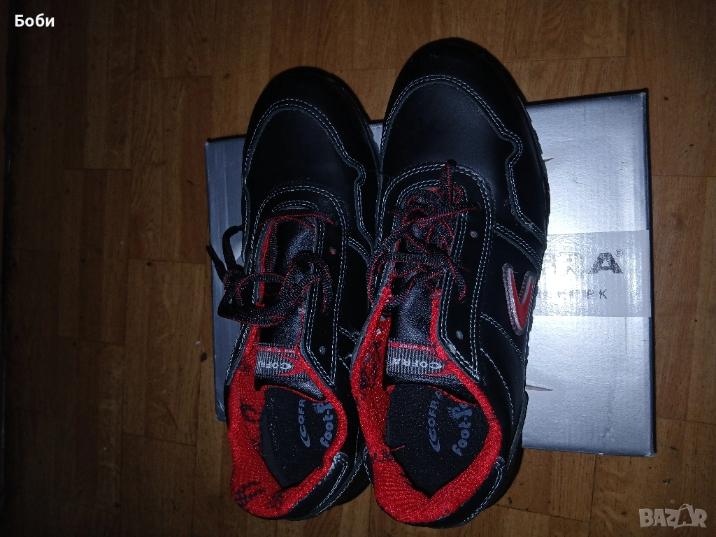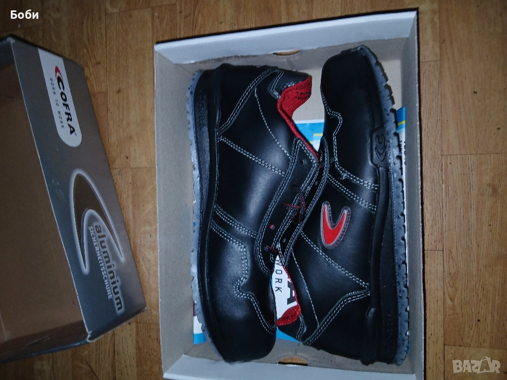 Чисто нови работни обувки кофра от естествена кожа италиански 43номер,противоплъзгащи се антистатични,с алуминиево бомбе против удър,стелки против запотяване,защита в подметката против преминаване на остри предмети,хубав цвят елегантни и удобни.