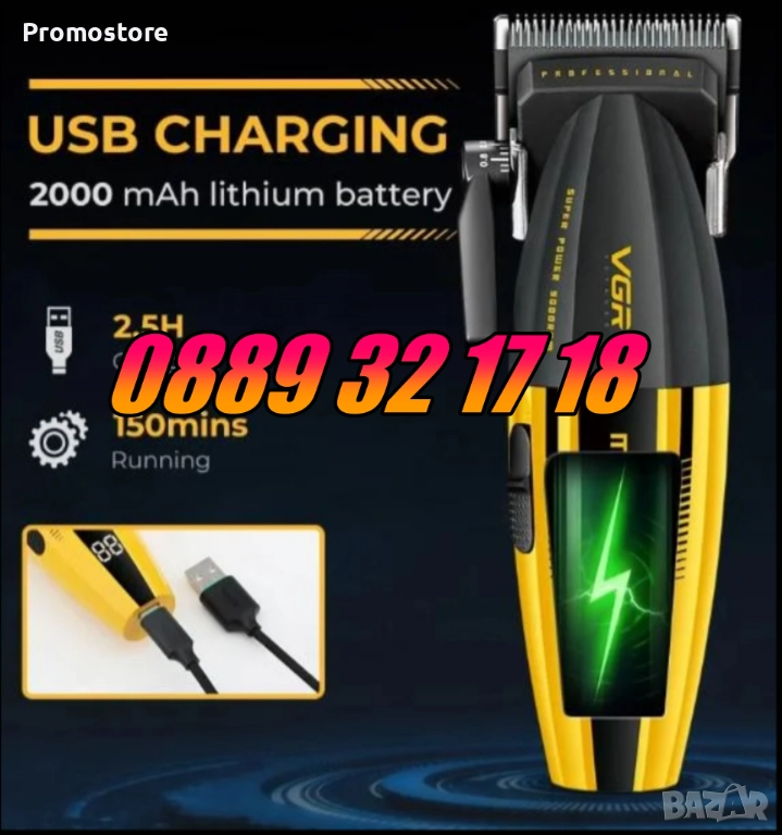 Безжична машинка за подстригване VGR 285, машинка за коса