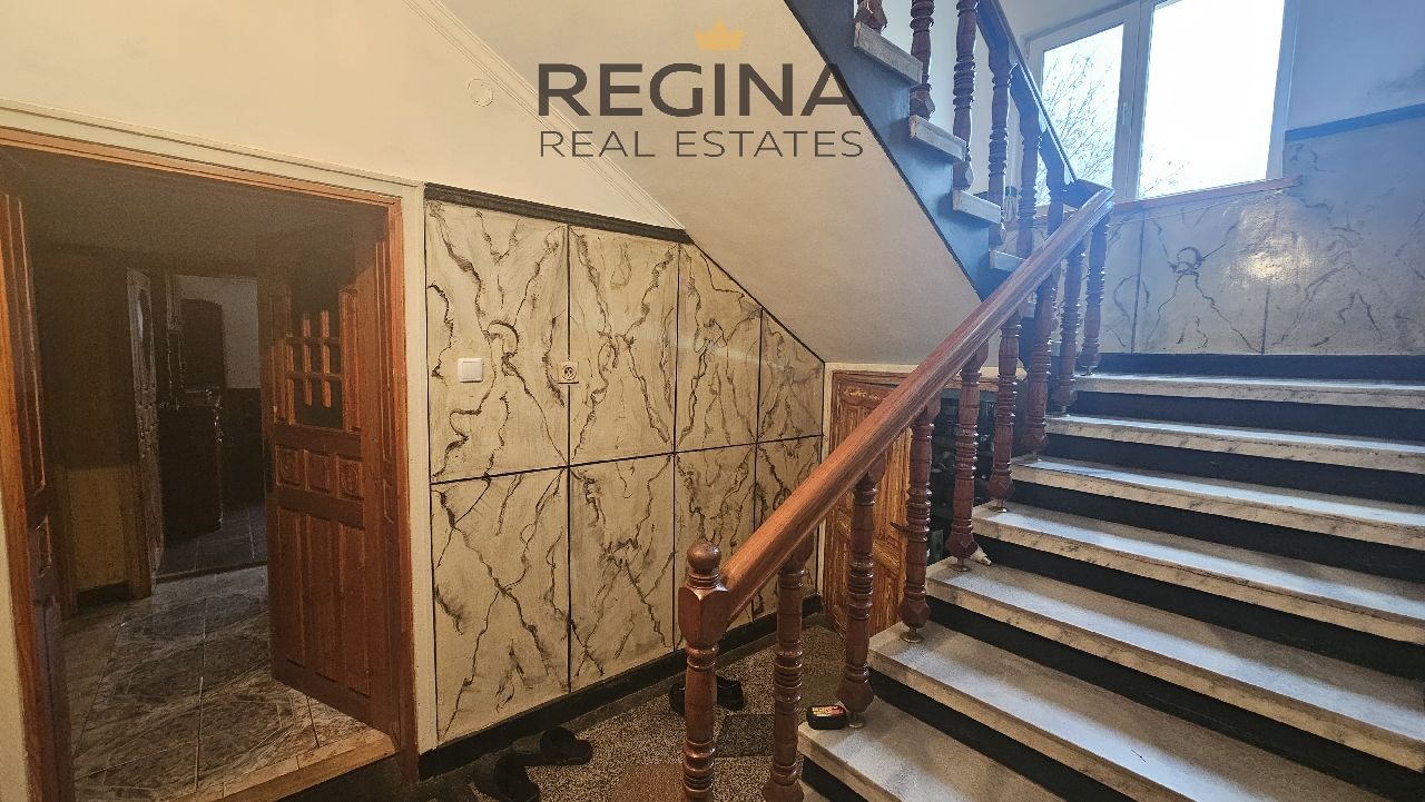 Къщата има вътрешно стълбище с настилка от естествен мрамор.