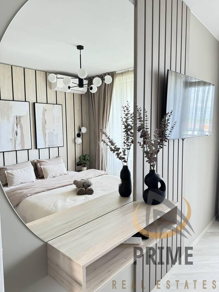 Чистно нов модерно обзаведен двустаен апартамент под наем, разположен в нова сграда, ж.к. Изгрев. За първи път под наем. Направен с вкус и съобразен с модните тенденции, с уникален интериорен дизайн.