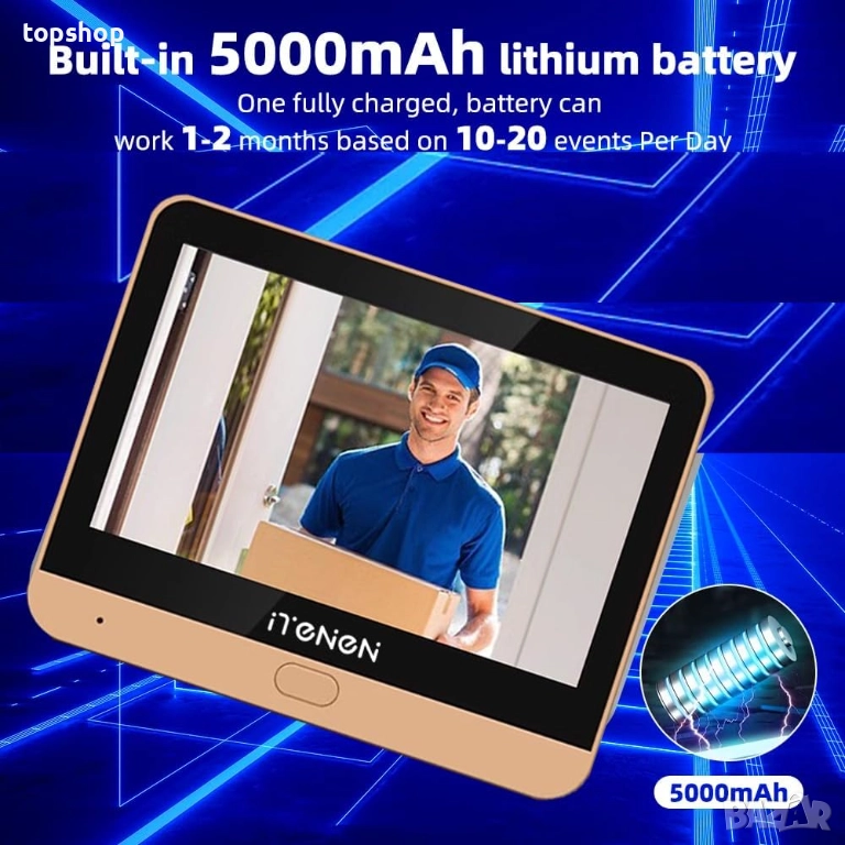 iTenen 3.0MP цифрова шпионка с вградена батерия 5000mAh и 32GB MicroSD, безжична с 4.3" цветен екран