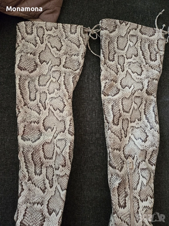 Уникални чизми, в най-актуалната сега змийска шарка. Обувани за проба