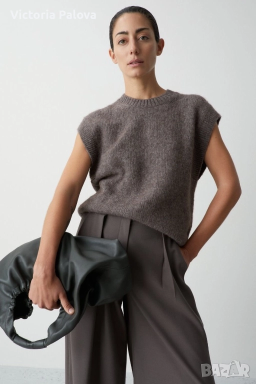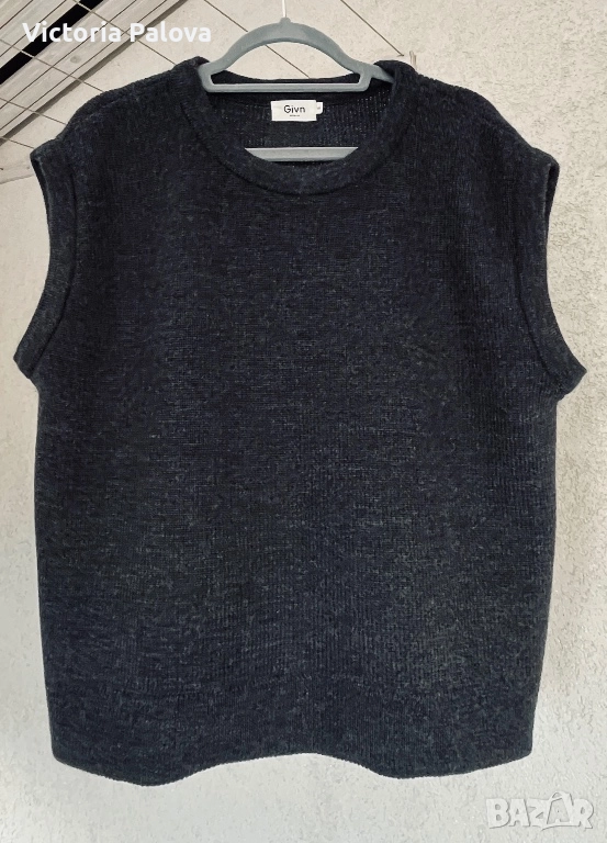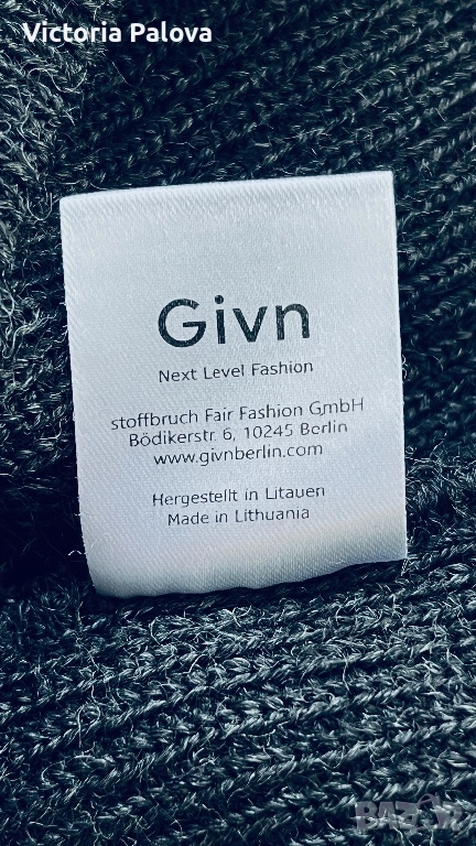 GIVN BERLIN - премиум марка , посветена на еко модата с най- строги международни стандарти - сертифицирана с GOTS, PETA APPROVED VEGAN, GRS. Пуловерът е от био вълна - антиалергенна, дишаща, екологична. Пуловерът е съчетание на уют и комфорт, идеален за layering, вечната класика с тъмносив оттенък. Рамо - 54см, ГО - 60см, дължина - 60см. Реалната му цена е 119,95 €