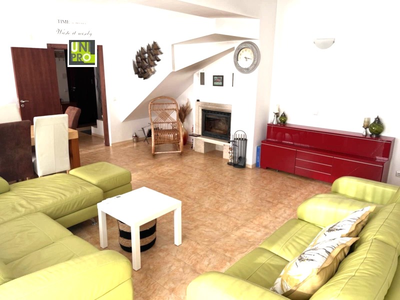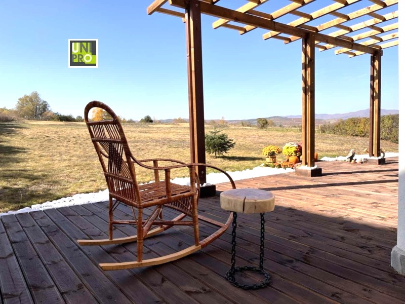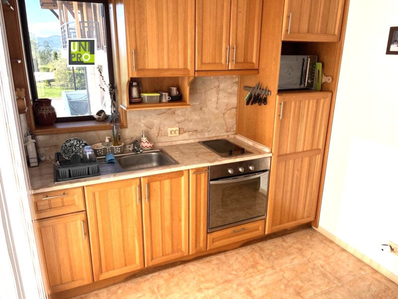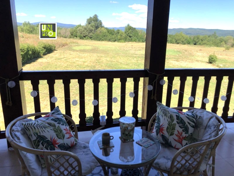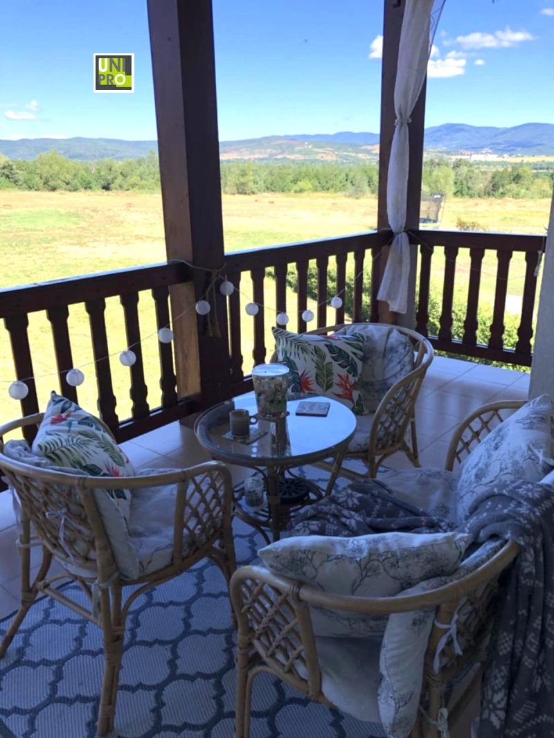 Къщата напълно обзаведена, разполага с 3 спални (общо 6 легла), 2 бани с тоалетни и 1 отделна тоалетна. Има изцяло оборудвана кухня и просторна дневна с камина. Дворът е 900 кв.м - равен и затревен. На партера има голяма веранда, а вторият етаж е с хубава тераса. И от двете се откриват красиви панорамни гледки към Рила и Средна гора.