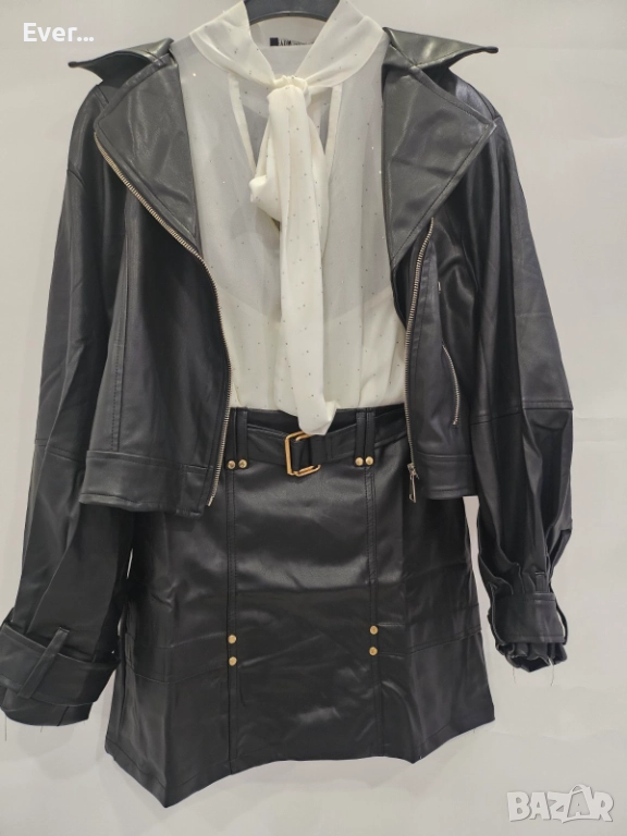 Сет от кожено яке,кожена пола и риза → Обява 52440548