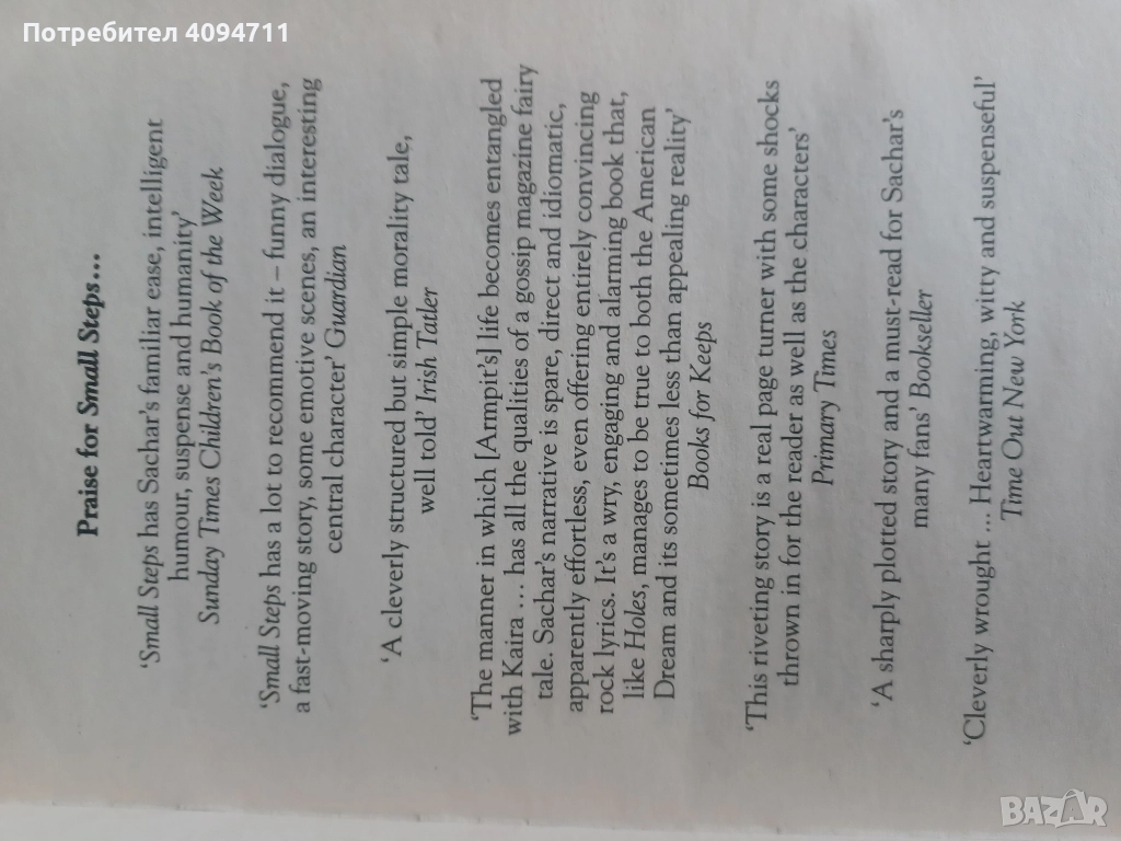 Small Steps by Louis Sachar, снимка 1 - Художествена литература - 52440608 Small Steps by Louis Sachar, снимка 2 - Художествена литература - 52440608 Small Steps by Louis Sachar, снимка 3 - Художествена литература - 52440608 Small Steps by Louis Sachar, снимка 4 - Художествена литература - 52440608 Small Steps by Louis Sachar, снимка 5 - Художествена литература - 52440608 1/5