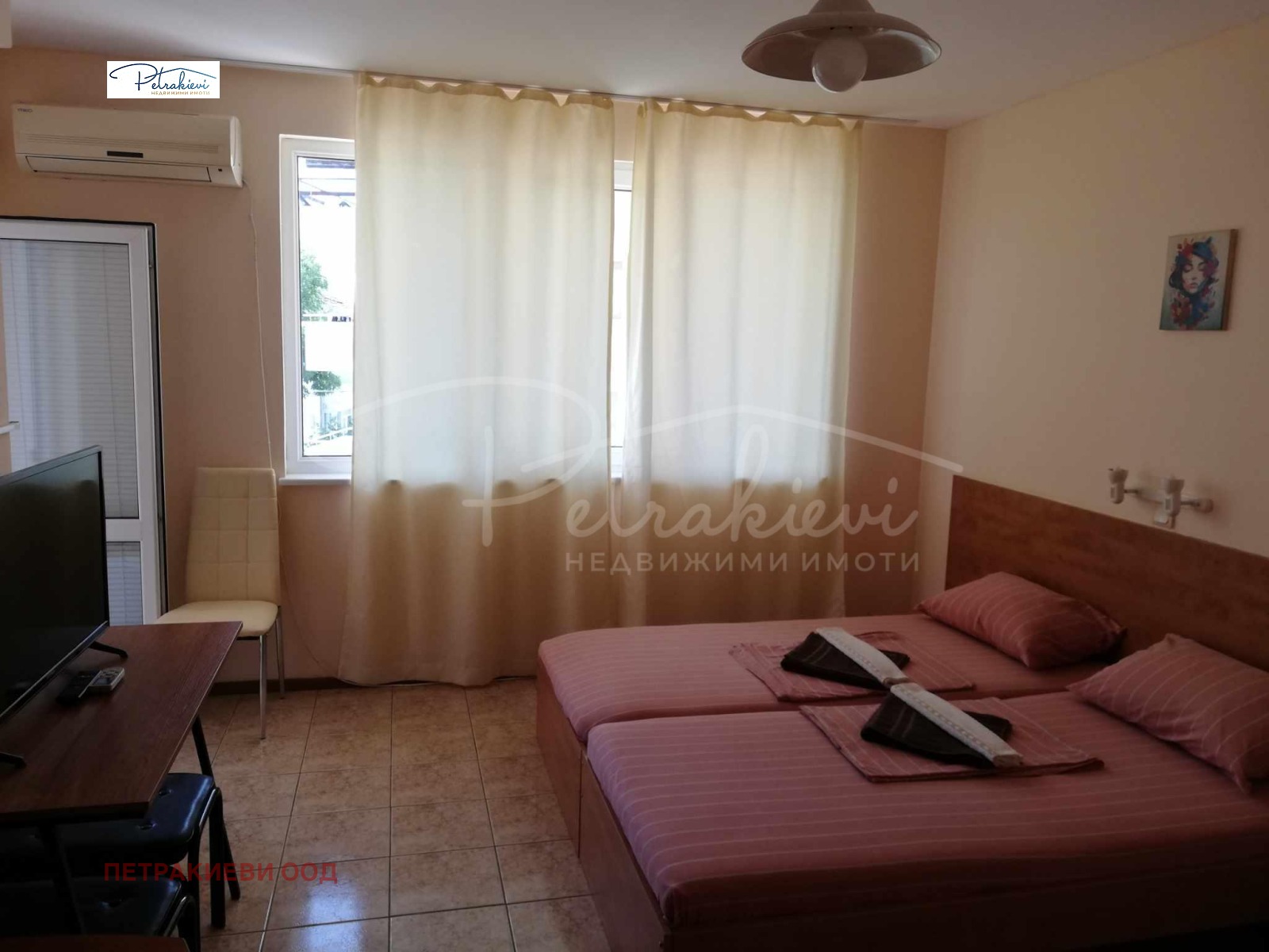Помещенията се предлагат напълно оборудвани (гардероб, маса, нощни шкафчета, хладилник, телевизор), готови за живеене и отдаване по наем.