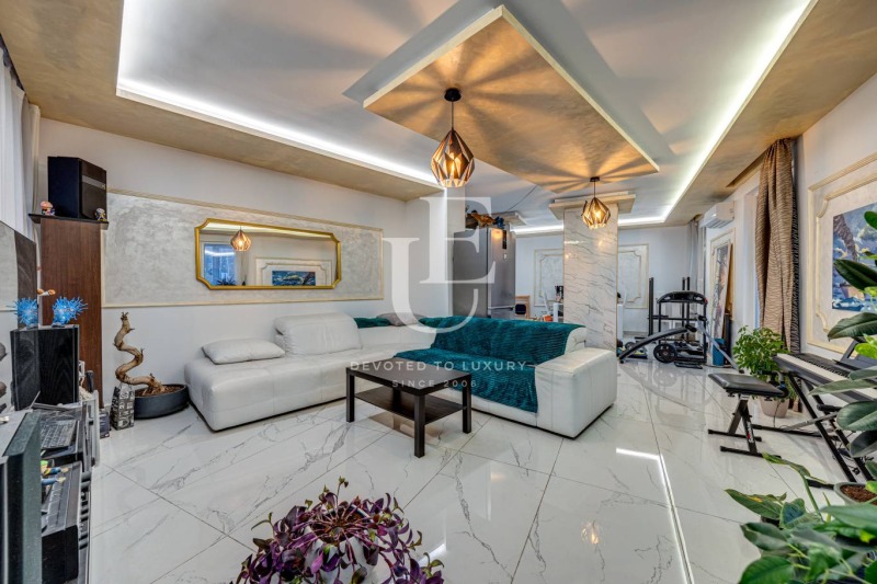 Жилището се намира на 4-ти етаж от общо пет и предлага обща площ от 182.42 кв.м застроена площ, с добро изложение и гледки на юг към планината и на запад към залеза. Апартаментът е напълно ремонтиран и обзаведен с внимание към детайла, готов за нанасяне.