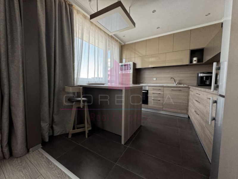КОРЕКТА ЕСТЕЙТ Ви предлага чудесен, ЛУКСОЗНО обзаведен тристаен апартамент само на 10 минути пешеходно разстояние до топ центъра на гр.Русе. Жилището е разположено на пети етаж в монолитна сграда с асансьор и е със следното разпределение: просторен дневен тракт около 40 кв.м с обособена кухненска, трапезарна и холова част, две големи самостоятелни спални, баня /с пералня и сушилня/, отделна тоалетна и две тераси, едната от които е остъклена с висок клас пвц дограма. Апартамента е основно ремонтиран, като всички стени и тавани са с гипсокартон и изолационна вата, подовите настилки са ламинат, стени шпакловани и боядисани в меки тонове, висококачествена PVC дограма, интериорни МДФ врати. Кухнята разполага с всички необходими електроуреди ( вградена фурна със стъклокерамични котлони, съдомиялна, аспиратор, , хладилник). Отопление и охлаждане е решено с висок клас енергоефективни климатици във всяка стая. Жилището разполга с абсолютно всички удобства и очаква своите наематели /без домашни любимци/. Зад блока има голям паркинг с достатъчно на брой места за паркиране.