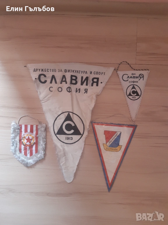 3.Колекционерски флаг на Ф.К. Славия София.Флага е изключително стар.Не мога да кажа с точност,но е над 45 години.Флага на Ф.К. Славия София е от плат.Не е ламиниран.С едно лице,флагчето е доста интересно.В перфектно състояние и вид флага има възможност за закачане на стена.