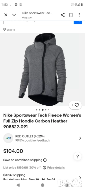 Nike Tech дамски асиметричен суитшърт с качулка размер L → Обява 52441552