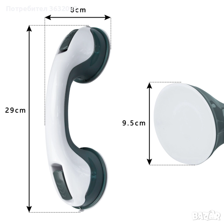 • Включва гъба за душ и вакуумна дръжка за лесно и сигурно закрепване