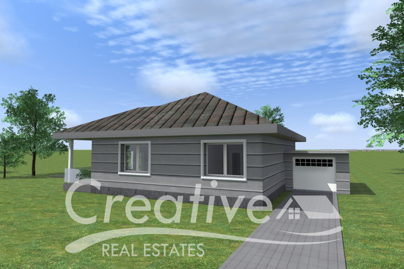 Къщата е с РЗП от 120 кв.м и разполага с двор от 300 кв.м. Състои се от : коридор, просторна дневна с кухненски кът и трапезария, три спални, два санитарни възела, гардеробна и веранда. Подпокривно пространство с височина над 2 м., което може да се усвои, като втори жилищен етаж!