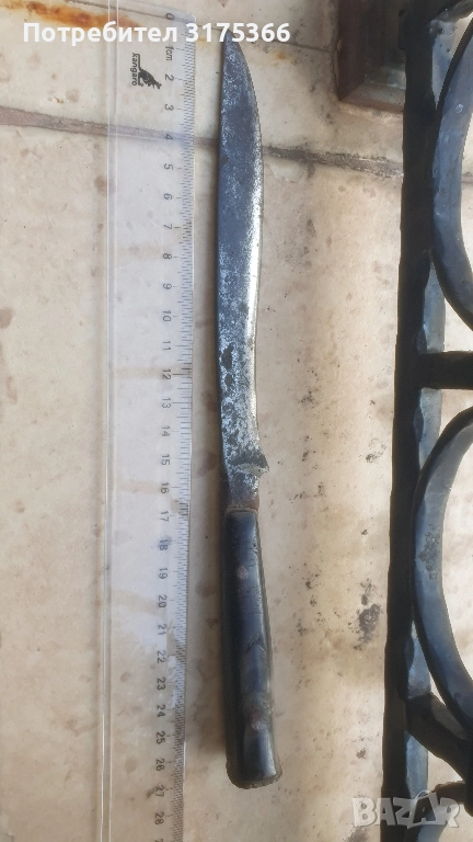 Стар кован овчарски нож с черен рог → Обява 52442861