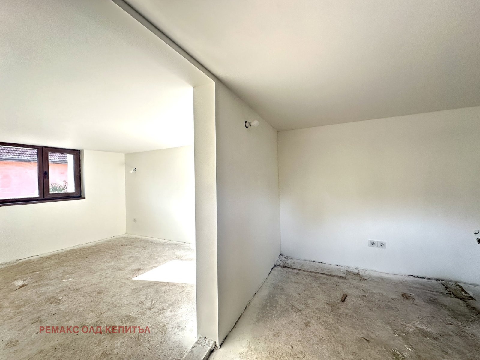 Основният етаж включва две спални, широк коридор и светла всекидневна с обособена кухненска зона. Банята с тоалетна е просторна и ще бъде напълно завършена, като е включена в цената на имота. Кухнята също ще бъде изградена и оборудвана, съобразена с функционалността на пространството, като разходите са включени в крайната цена.