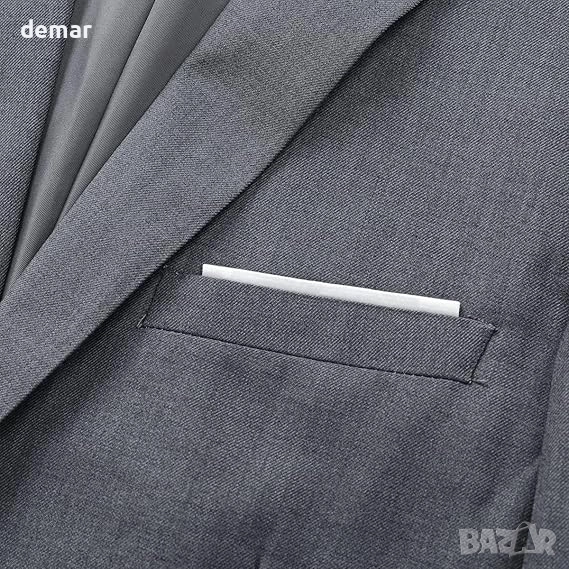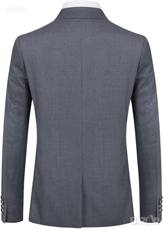 Това мъжко сако е с едноредно закопчаване с едно копче, централен разцеп, вдлъбнат ревер и структурирани рамене, плюс вътрешни и външни джобове за практичност. Предлага се с папионка и се съчетава добре с прилепнали панталони за интервюта, срещи или вечерни поводи. Дишащият материал го прави удобен за целогодишно носене, предлагайки елегантен, изискан външен вид, подходящ както за професионална обстановка, така и за социални събития.