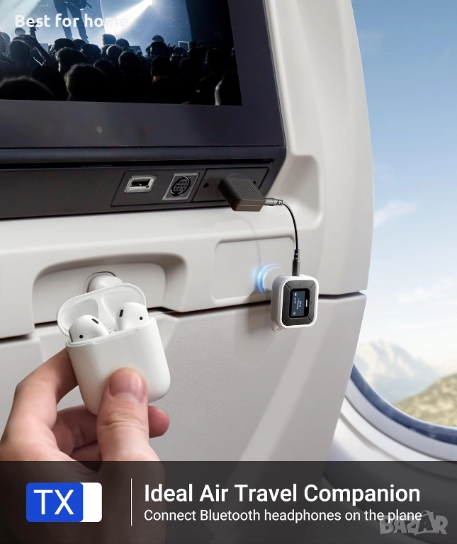 HD дисплей и двойно сдвояване: Bluetooth адаптерът е съвместим със серията AirPods, AirPods MAX, Beats, JBL, Soundcore, Sony, Bose и други. Насладете се на безпроблемна работа с ясния екран на нашия адаптер за слушалки за самолет. Тази функция ви помага лесно да проследявате състоянието на адаптера, бързо да идентифицирате евентуални проблеми и да избягвате неправилни връзки. С поддръжката на двойно сдвояване можете без усилие да споделите забавлението с приятеля си, потапяйки се заедно в свят на завладяваща музика и филми.