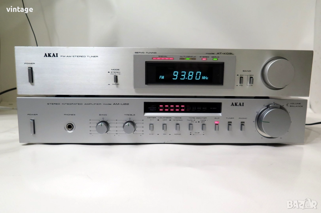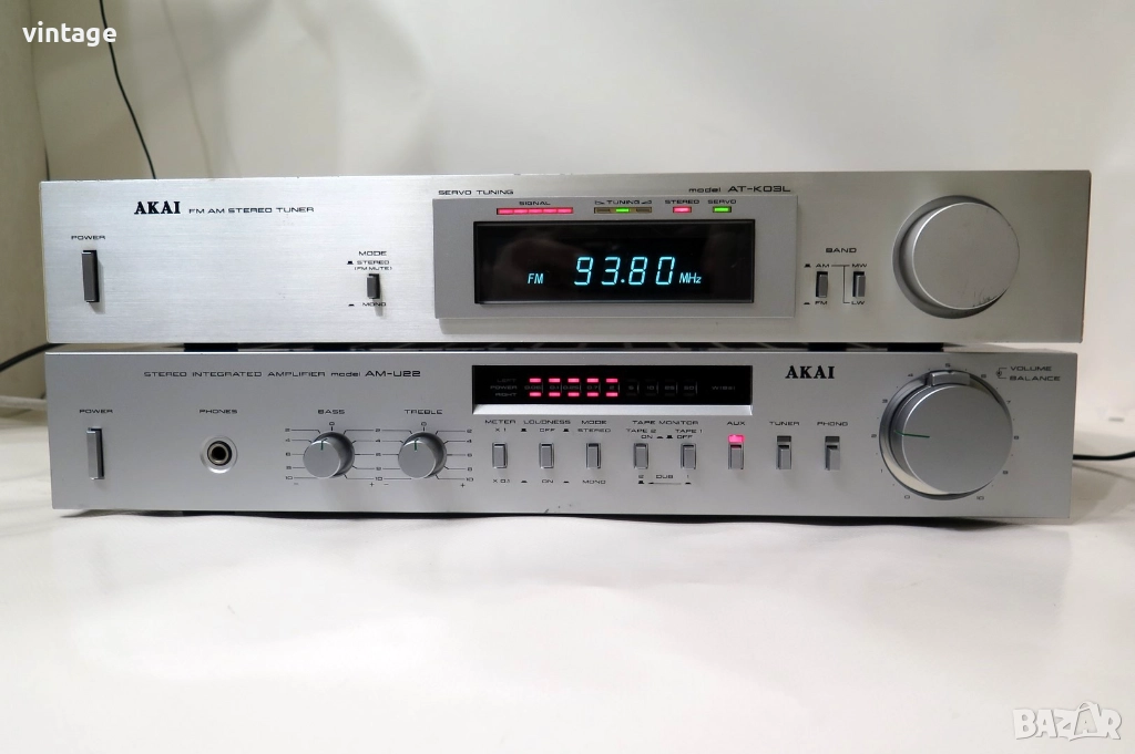 Сет AKAI, състои се от стерео усилвател AKAI AM-U22 и стерео тунер AKAI AT-K03L, отлични технически, много добър външен вид. Приложените снимки и видео са реални!