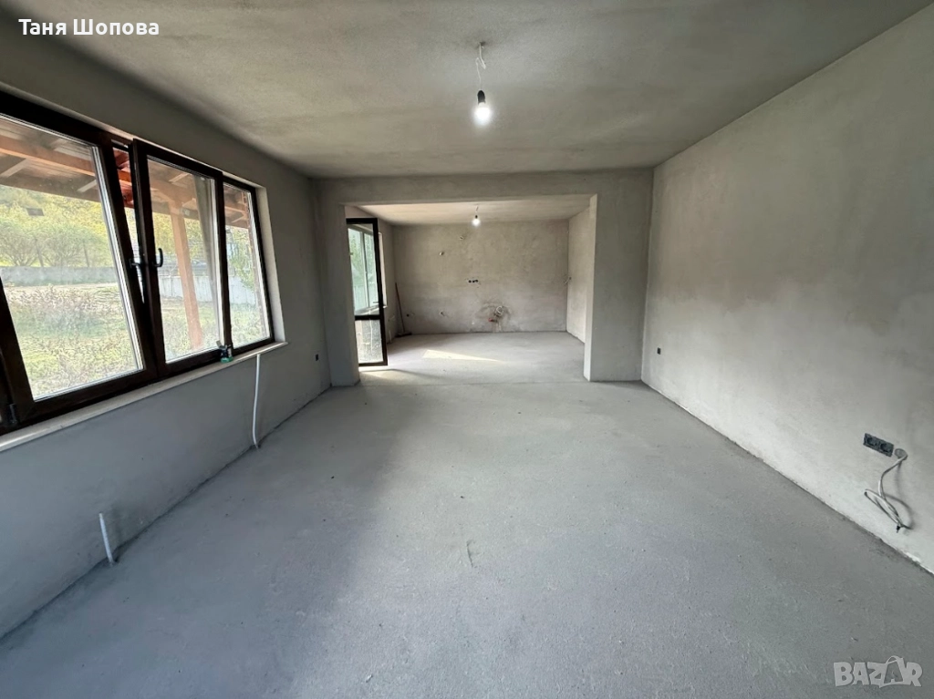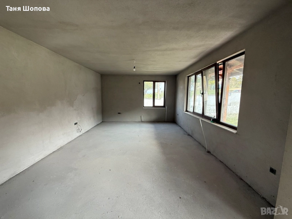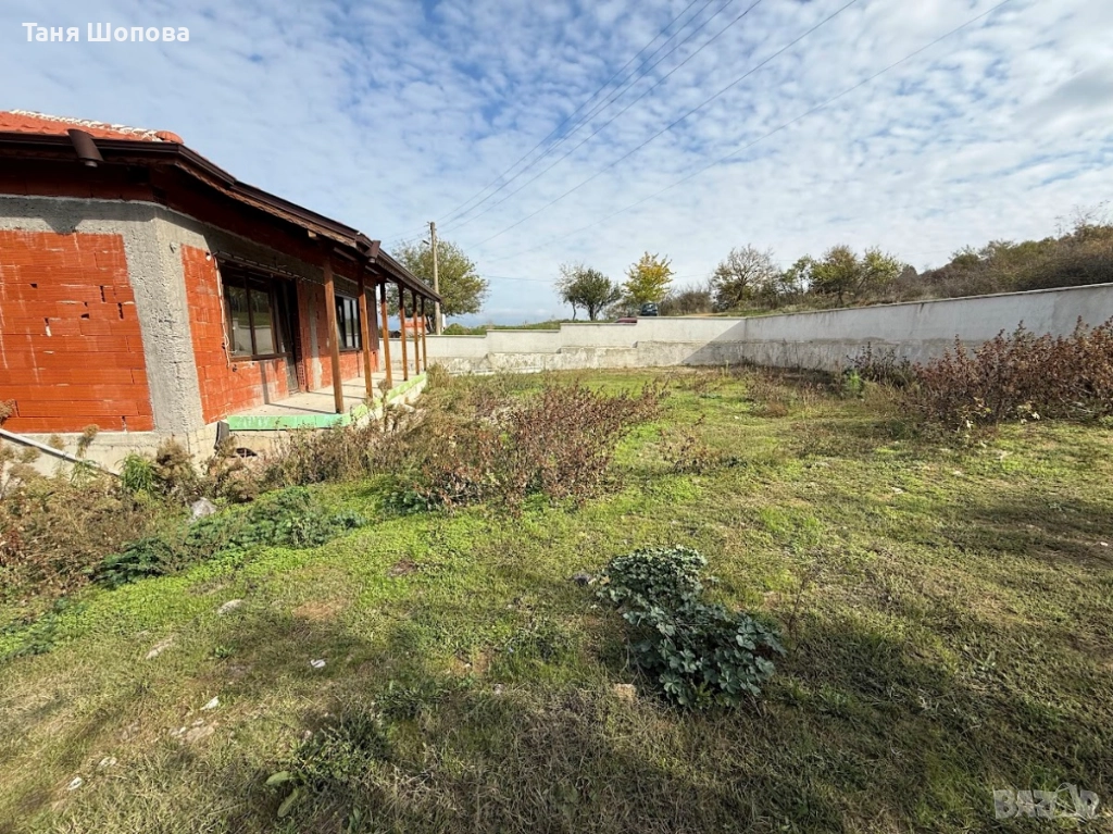 Агенция за недвижими ИМОТИ ШОПОВА предлага на Вашето внимание едноетажна масивна жилищна сграда за продажба в община Петрич. Урегулирания поземлен имот е с площ 518 кв.м. , жилищната сграда е със застроена площ 135 кв.м., мазе с площ 60 кв.м.. Къщата е със следното разпределение : входен коридор, всекидневна с просторна кухня, две спални, баня с тоалетна, перално помещение, веранда и два балкона. Дограма – 5 камерна ПВЦ, под – замазка с положени тръби за локално отопление, стени – мазилка. Къщата е строена през 2018г., продава се завършена до етап „ груб строеж“ с партида за ток и „ВиК“, поставена дограма, замазка, вътрешна мазилка. Имота се намира в близост до планина Беласица, тишина, спокойствие сред природата Имота е подходящ както за постоянно живеене, така и за къща за гости в района има търсене за наемане на подобен тип имот.