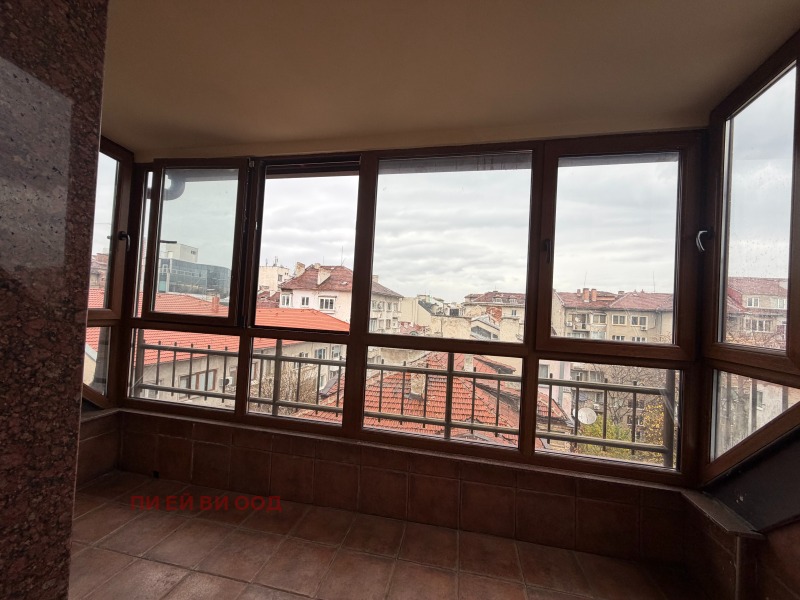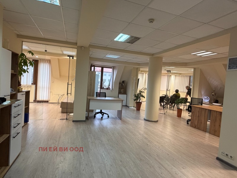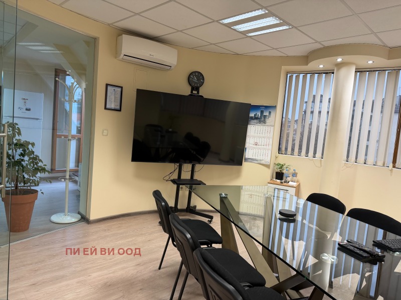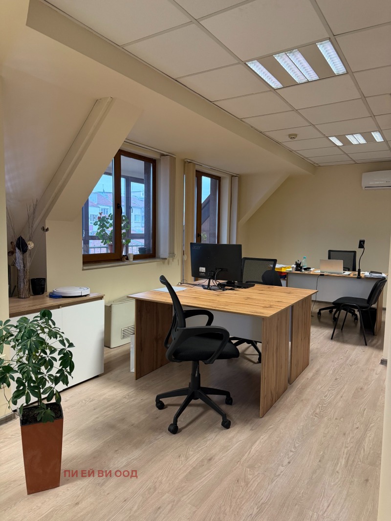 Офис в центъра на София, ул. 'Христо Белчев' 29. Етаж 5, предпоследен, с прекрасна гледка към града. Състои се от овално помещение, подходящо за кабинет на управителя или заседателна, още две работни помещения, отделна работна стая на етажа, две санитарни помещения, остъклен балкон, два открити балкона. Разполага с рецепция на партерно ниво, контролиран достъп, видеонаблюдение, компютърно окабеляване, аварийно електро захранване с дизел генератор, оптичен интернет, качествена звукова и топло-изолация, окачени тавани, асансьор. Отоплението е на ТЕЦ и мултисплит климатична система. Цената на офиса е без ДДС и БЕЗ обзавеждането от снимките. На последните снимки е без обзавеждане. При желание обзавеждането да остане, неговата цена е 5 000 евро и включва 5 бюра, TV 75 инча, 7 шкафа, диван, заседателна маса със столове, хладилник.